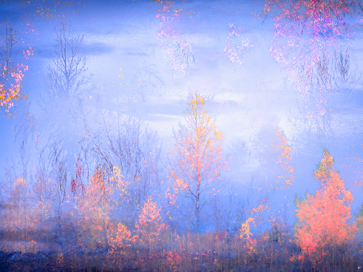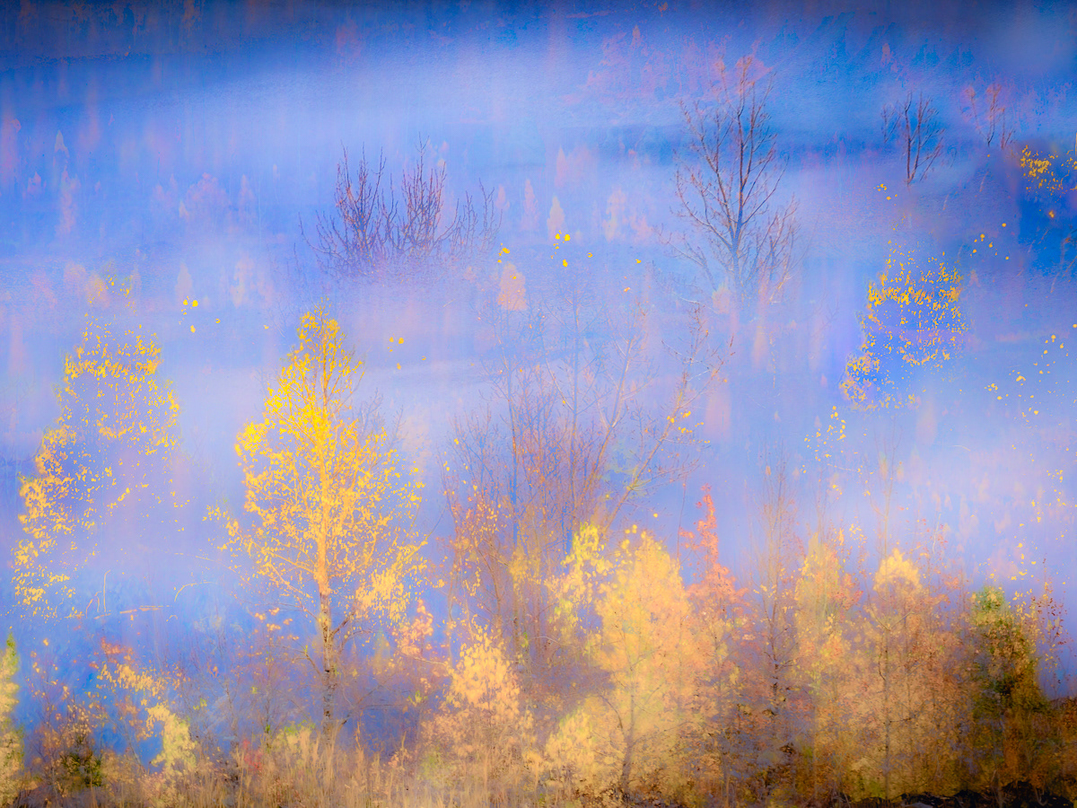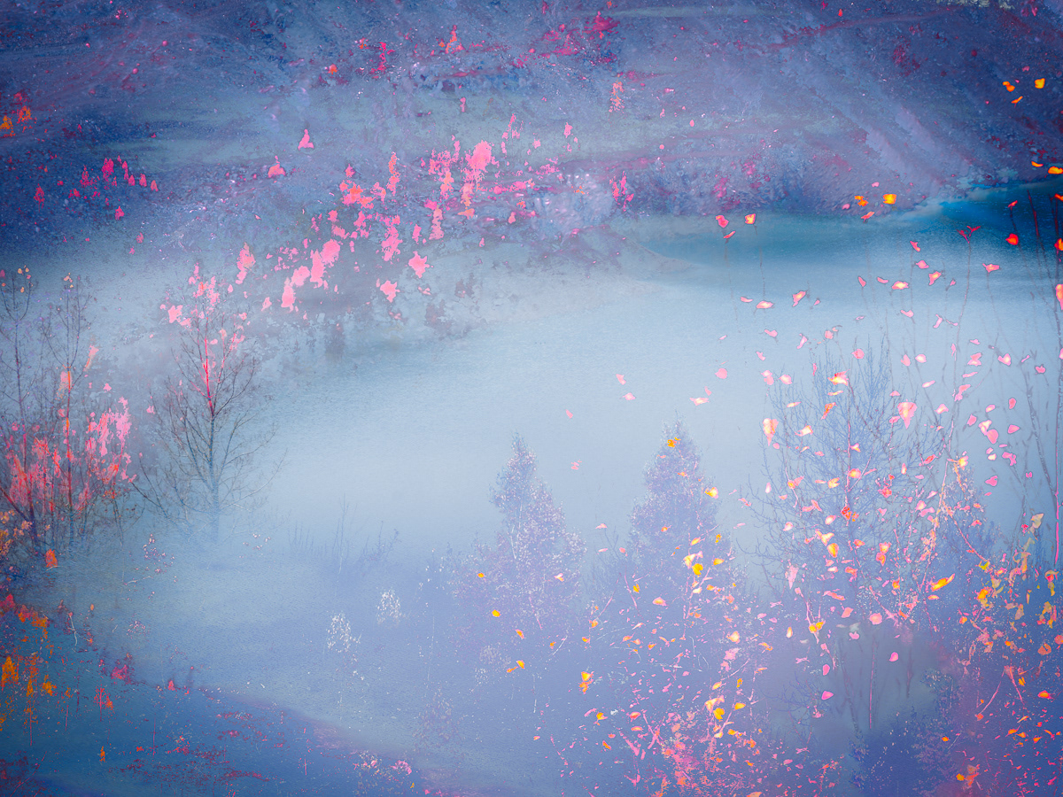 There is great comfort in seeing communities band together to celebrate nature by creating spaces that are clean, ecologically balanced and safe. The former Jeffrey mine is such an example where, after the mine closure, stabilization of the land, fertilization, planting of trees and pollination through the establishment of bee colonies, created a renewed ecological environment illustrating some healing of this planet. The joyful colours and textures of the fall trees play against the strength emanating from the blue waters of the lake formed from underground water.